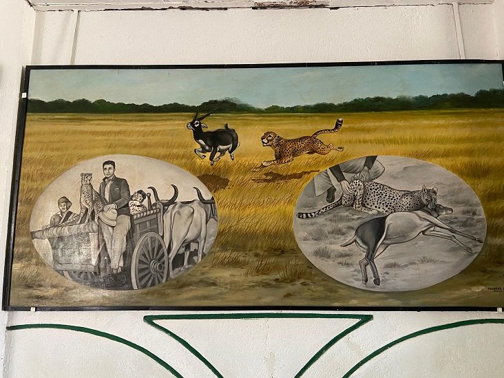 A trained cheetah was brought to the site in bullock cart where herds of blackbuck is found eyes of cheetah usually kept closed whit black fabricated strap after approaching herd the strap from cheetah eyes opened and left behing the group trained cheetah caught an adult fully black male all the time killed blackbuck then collected by maharaja the meat of blackbuck then offered to guest as well as cheetah as reward in this hunting method only admit mature black males were selected so popular could not suffered drastic decline and over all health of the population